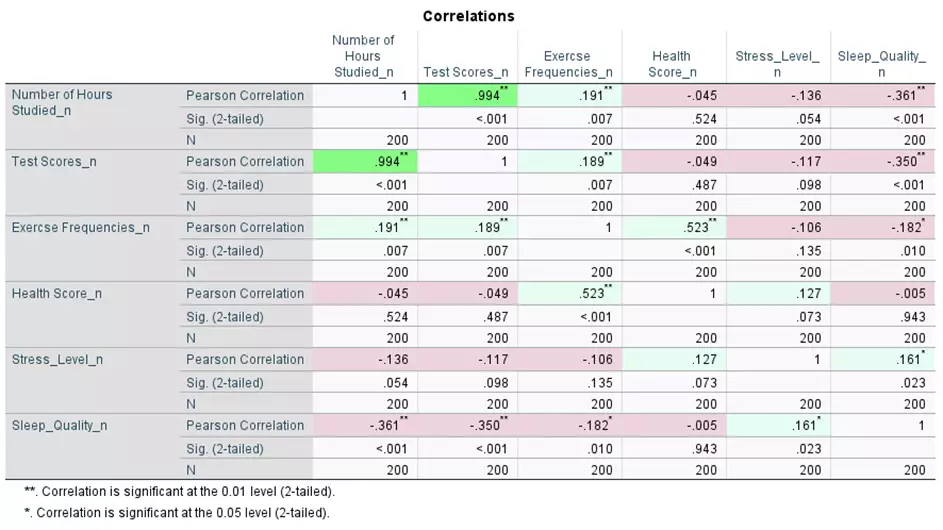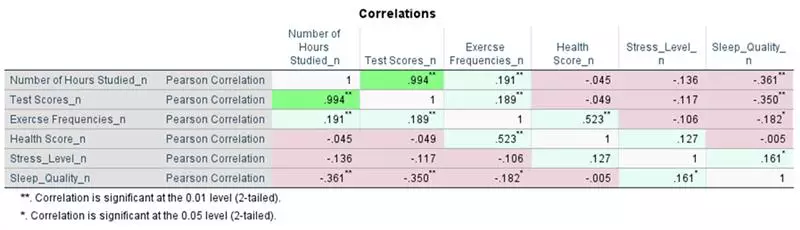 Reformatee rápidamente los resultados de correlación mediante un script integrado. Para realizar esta acción, ejecute el procedimiento de correlación, pulse en la tabla visualizada, vaya a Utilidades > Ejecutar script y seleccione IBM SPSS Statistics/Resources/Scripts/Reformat Correlations Table.py. Esto creará una tabla más legible y compacta.